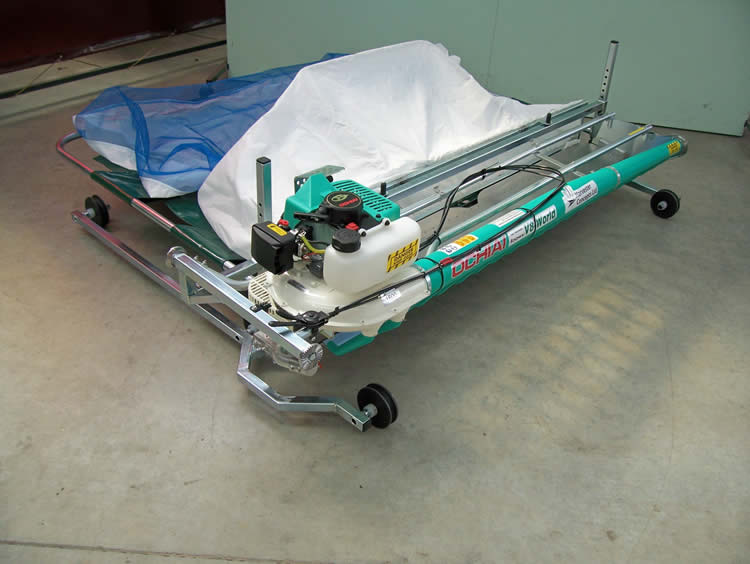 A typical application is hydroponic growing tables in tunnel houses. The HT-Table Top (TTH) runs on rails at the edge of each table. The crop is cut and blown into the collection bag. The HT-Table Top has adjustable cutting height from negative values to more than 400mm (customised to suit customer) so can also be used for topping crops.