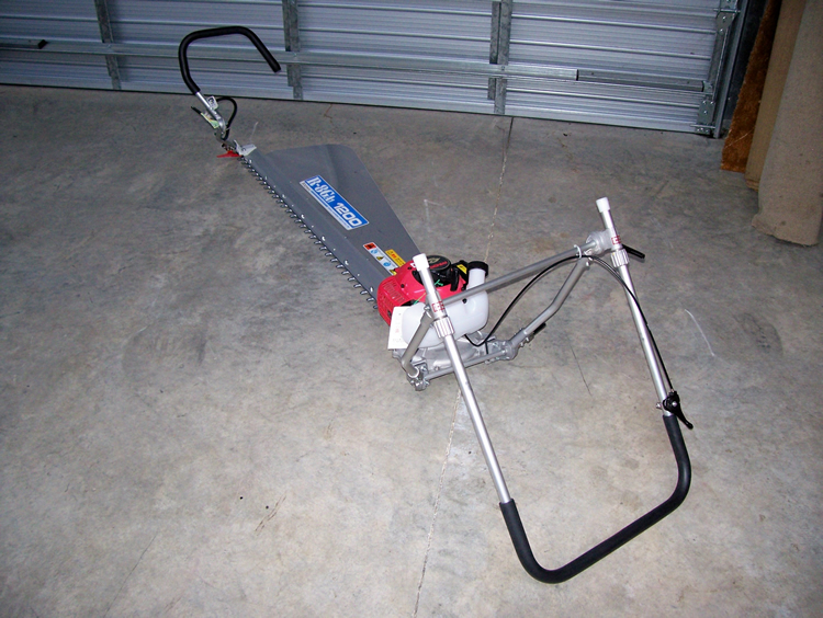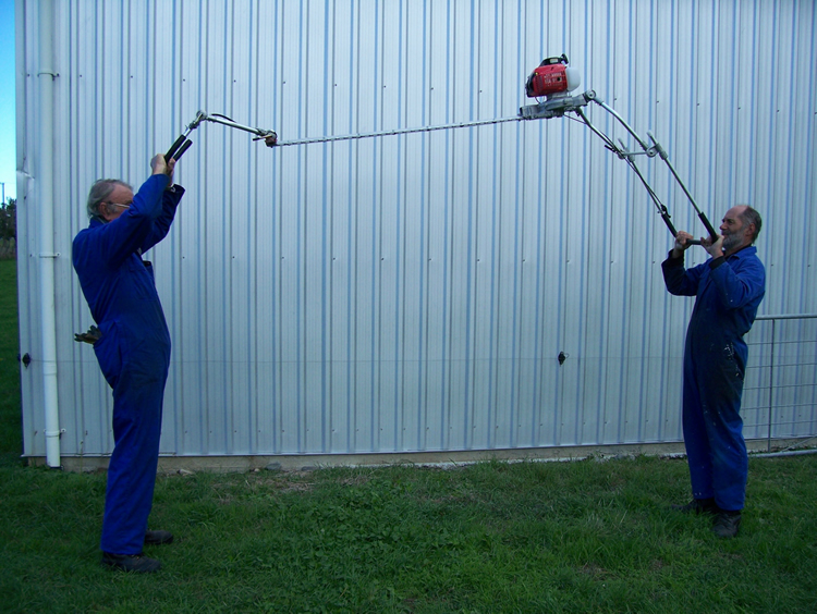 The R8 is a versatile pruning machine. It cuts and blows the cuttings away from the crop or hedge plants. Deflectors can be fitted to deflect cuttings into a desirable area. Adjustable handles allow easy pruning from ground level to above head height.